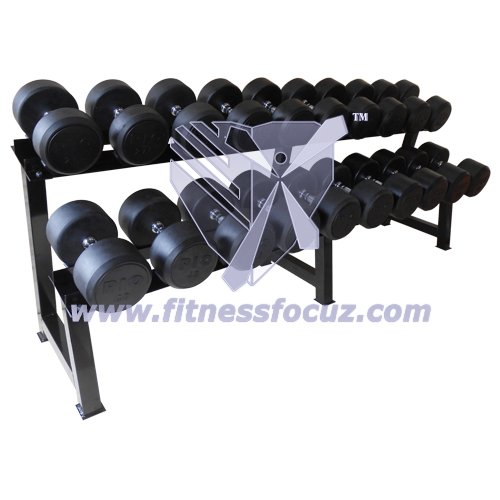 / Fixed Rubberized Dumbell Set With 2-Tier Dumbell Rack (10 Pairs; 27.5kg – 50kg @ 2.5kg Increment)